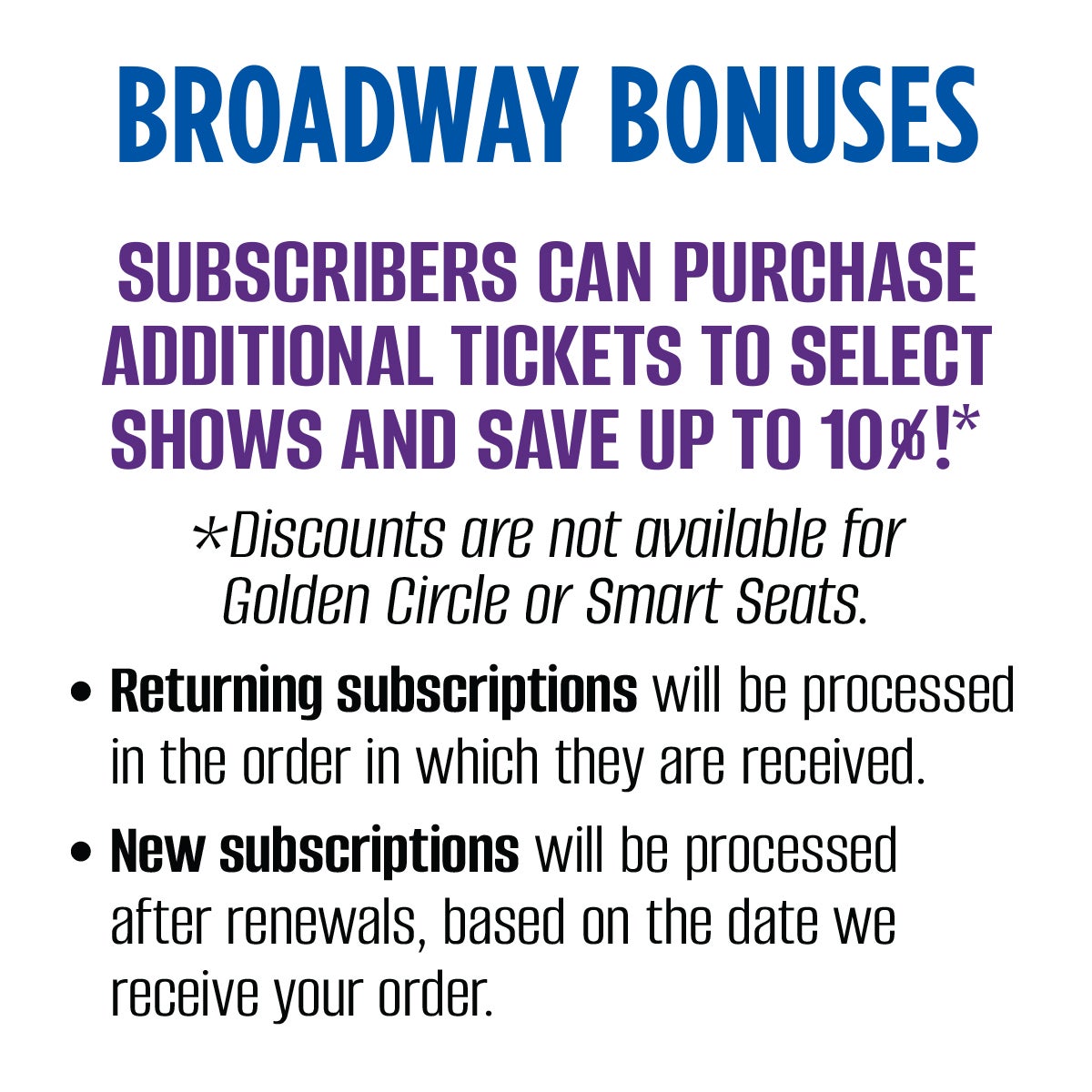 New subscribers may reserve a subscription at any time. New subscribers will be seated after renewing subscribers.
